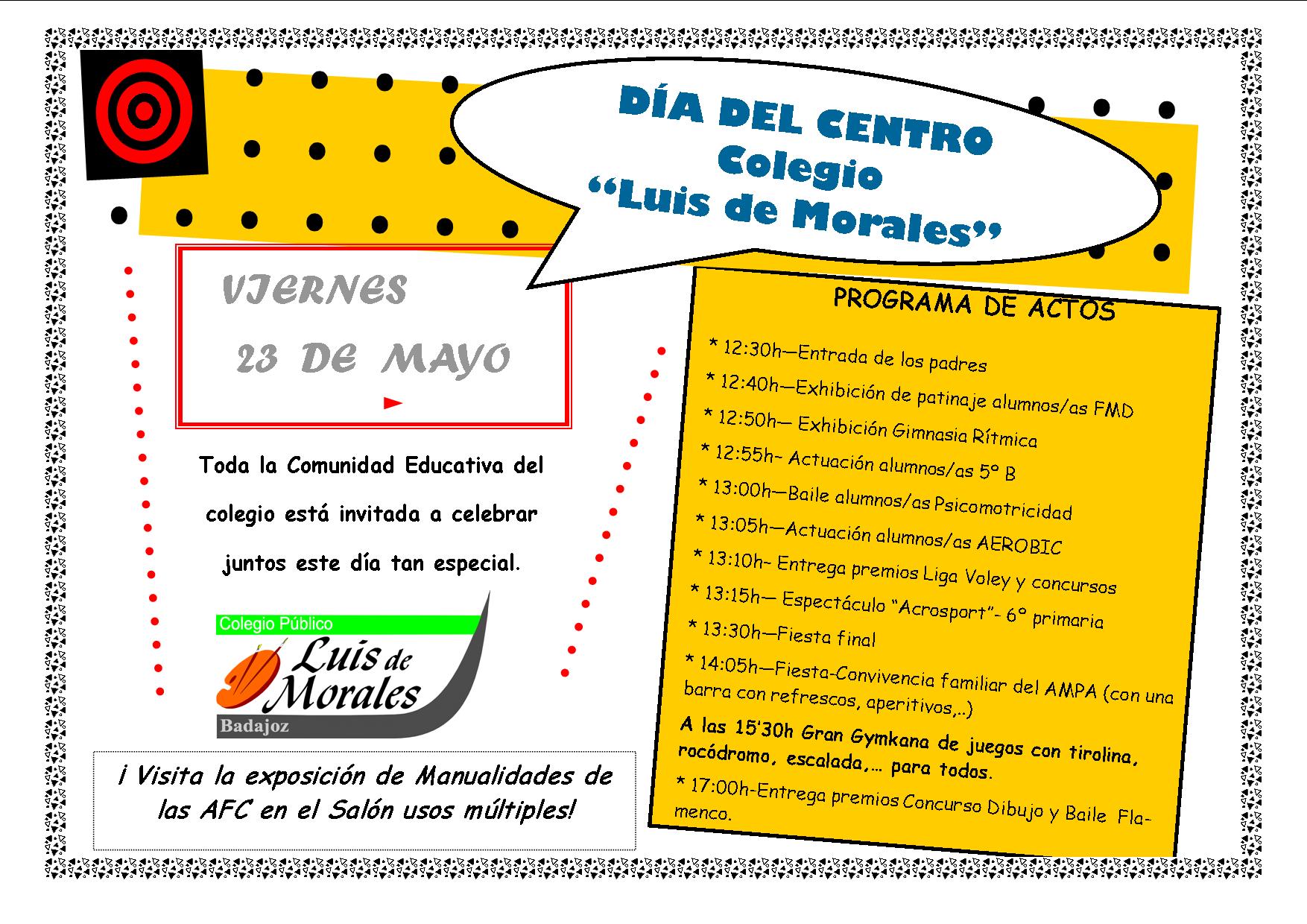 Un año más el final del mes de mayo nos trae una de las actividades generales del centro más esperadas por alumnos y familias: ¡EL DÍA DEL CENTRO! Este curso será el viernes 23. Esperemos que el tiempo respete este día tan especial y lleno de actividades al aire libre que los alumnos realizarán desde el inicio de la jornada.