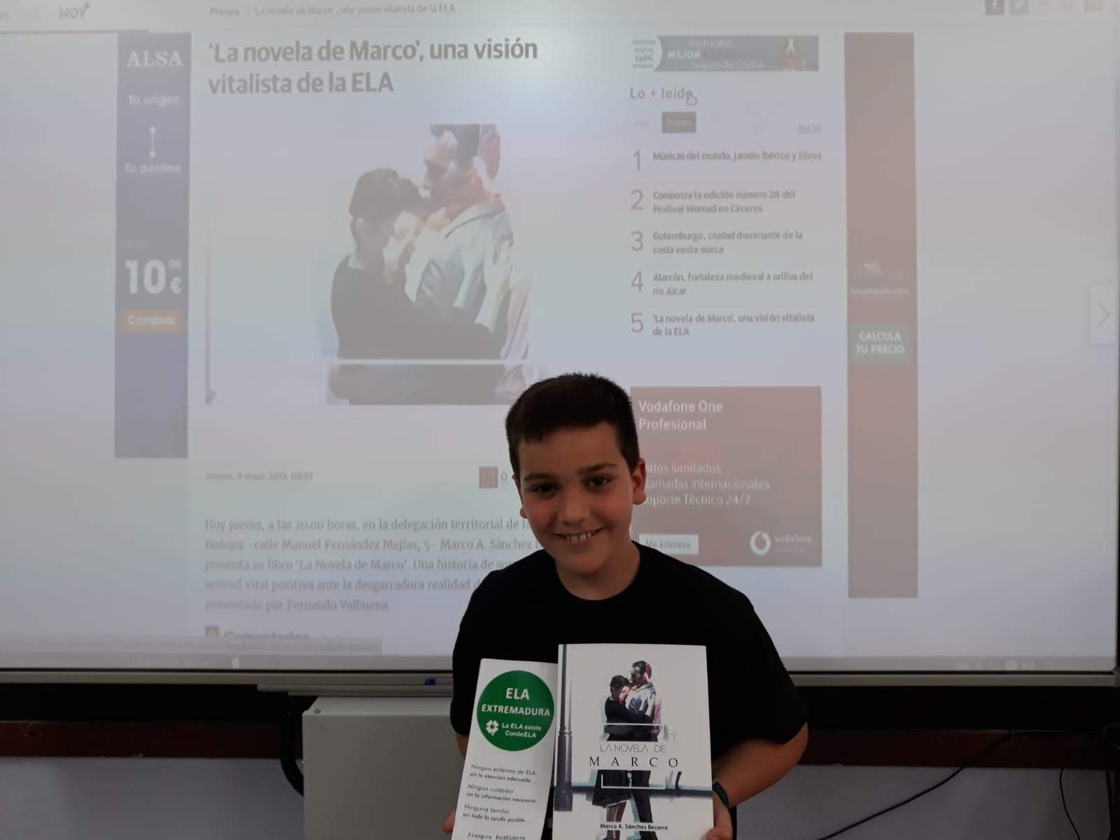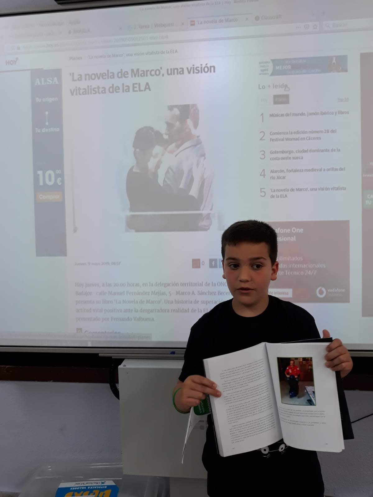 Ayer tuvo lugar la presentación del libro por parte del autor, en Badajoz y hoy Manuel, lo ha querido hacer para nosotros en el cole. Una presentación cargada de emoción y de una sensibilidad especial, de un libro que muestra cómo viven los enfermos del ELA, que dificultades tienen en el día a día pero también las satisfaciones que viven, recibiendo el apoyo de los demás.