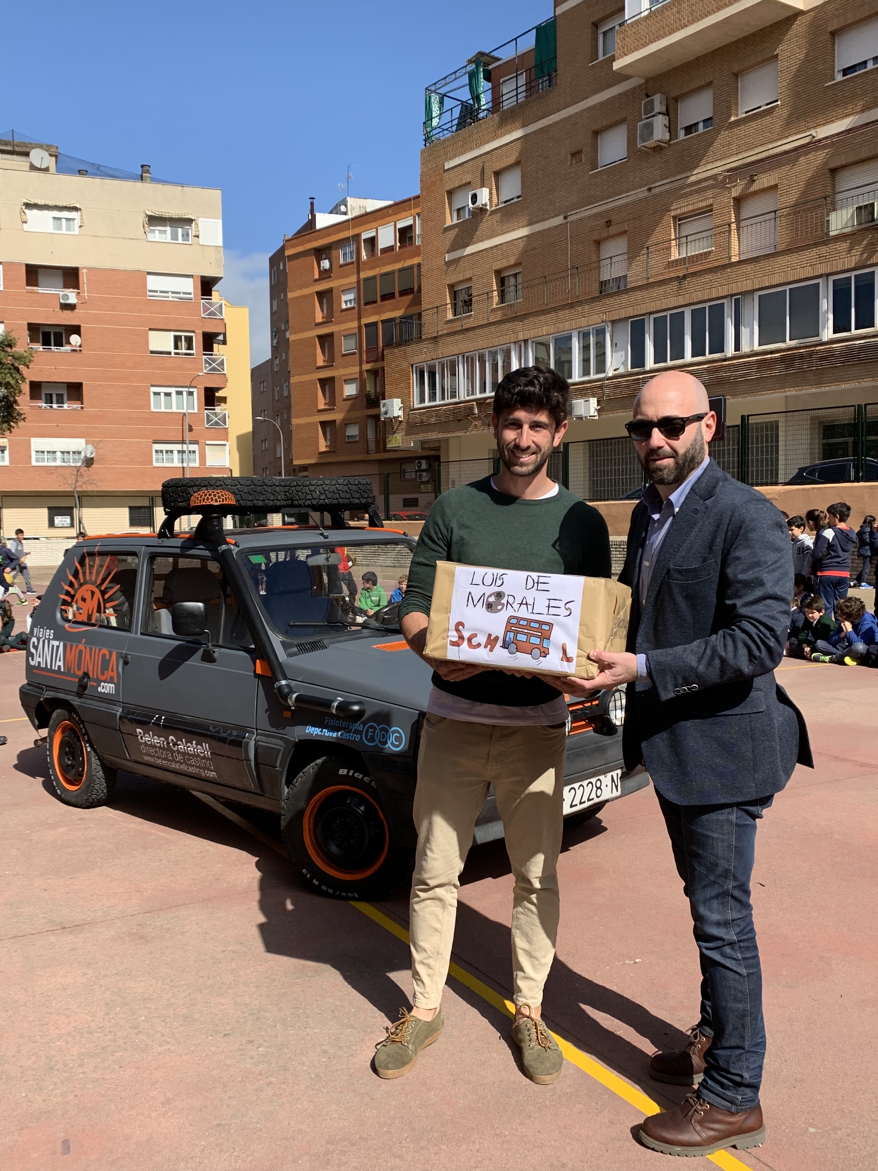 Hoy hemos tenido una visita especial en el cole. Dos antiguos alumnos del centro, Aníbal y Curro, van a realizar un raid por Marruecos. Este viaje va cargado de una gran labor solidaria, pues su objetivo es llevar material escolar a aquellas zonas del país donde los recursos son escasos. Desde el colegio les hemos ayudado con una pequeña aportación de material escolar, para que la distribuyan cuando lleguen a su lugar de destino. Nos han contado, muchas cosas de su aventura que empieza mañana y nuestros alumnos han aprovechado para preguntarles y satisfacer así su curiosidad, sobre datos importantes del viaje; además han venido con el coche que van a utlizar en el rail, despertando gran entusiasmo en nuestros alumnos y alumnas.