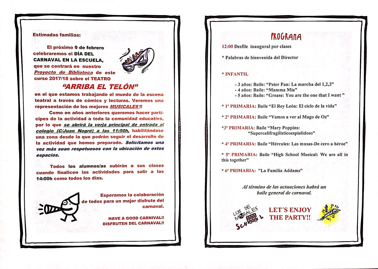 El próximo 12 de febrero os esperamos en el CEIP Luis de Morales con nuestro happy carnival, actividades de 9 a 14 horas; contamos con servicio de aula matinal y comedor.
