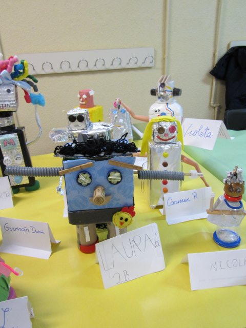 Our second graders have been studying the differents types of materials that things are made of. These special robots are the results of our science and art projects. The implication of the student´s families have been very importan for the kids learning.